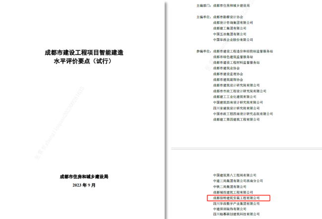 行業(yè)動(dòng)態(tài) | 倍特建安參編的《成都市建設(shè)工程項(xiàng)目智能建造水平評(píng)價(jià)要點(diǎn)(試行)》發(fā)布