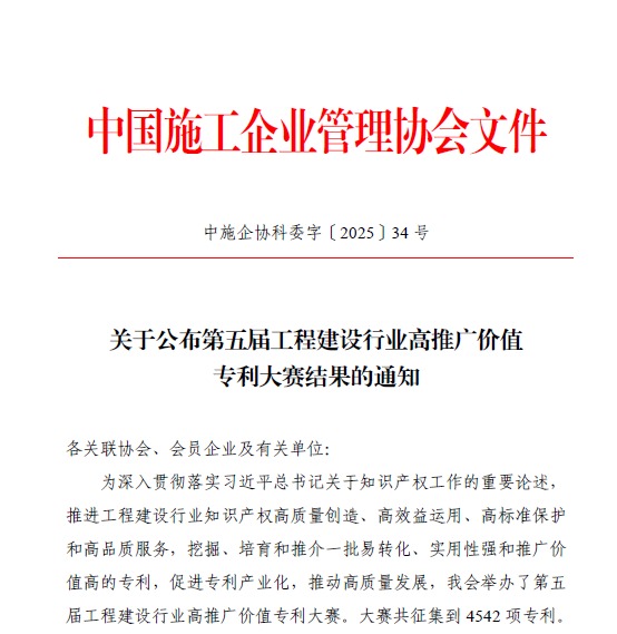 倍特建安榮獲第五屆工程建設(shè)行業(yè)高推廣價(jià)值專利大賽三等獎(jiǎng)